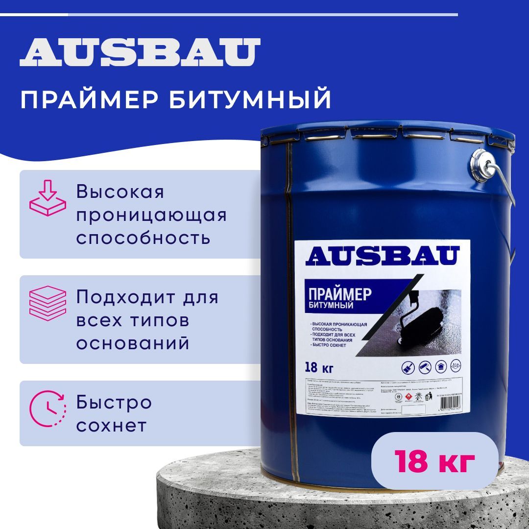 Праймер битумный AUSBAU представляет собой раствор нефтяных битумов в специально подобранных органических растворителях. Обладает высокой проникающей способностью и малым временем высыхания.