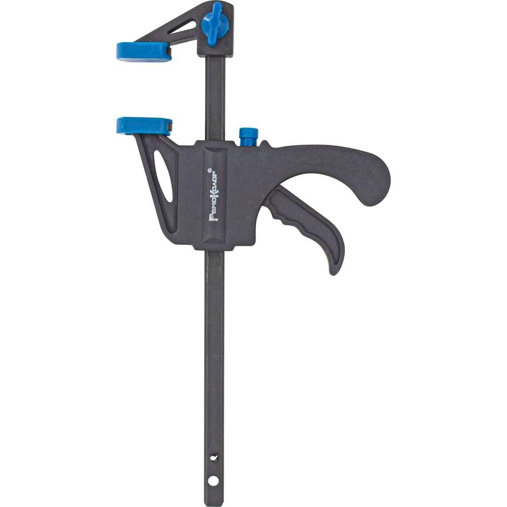 Быстрозажимная струбцина с фиксатором,обеспечивает хорошую силу сжатия, что упрощает выполнение работ любой сложности в мастерской.